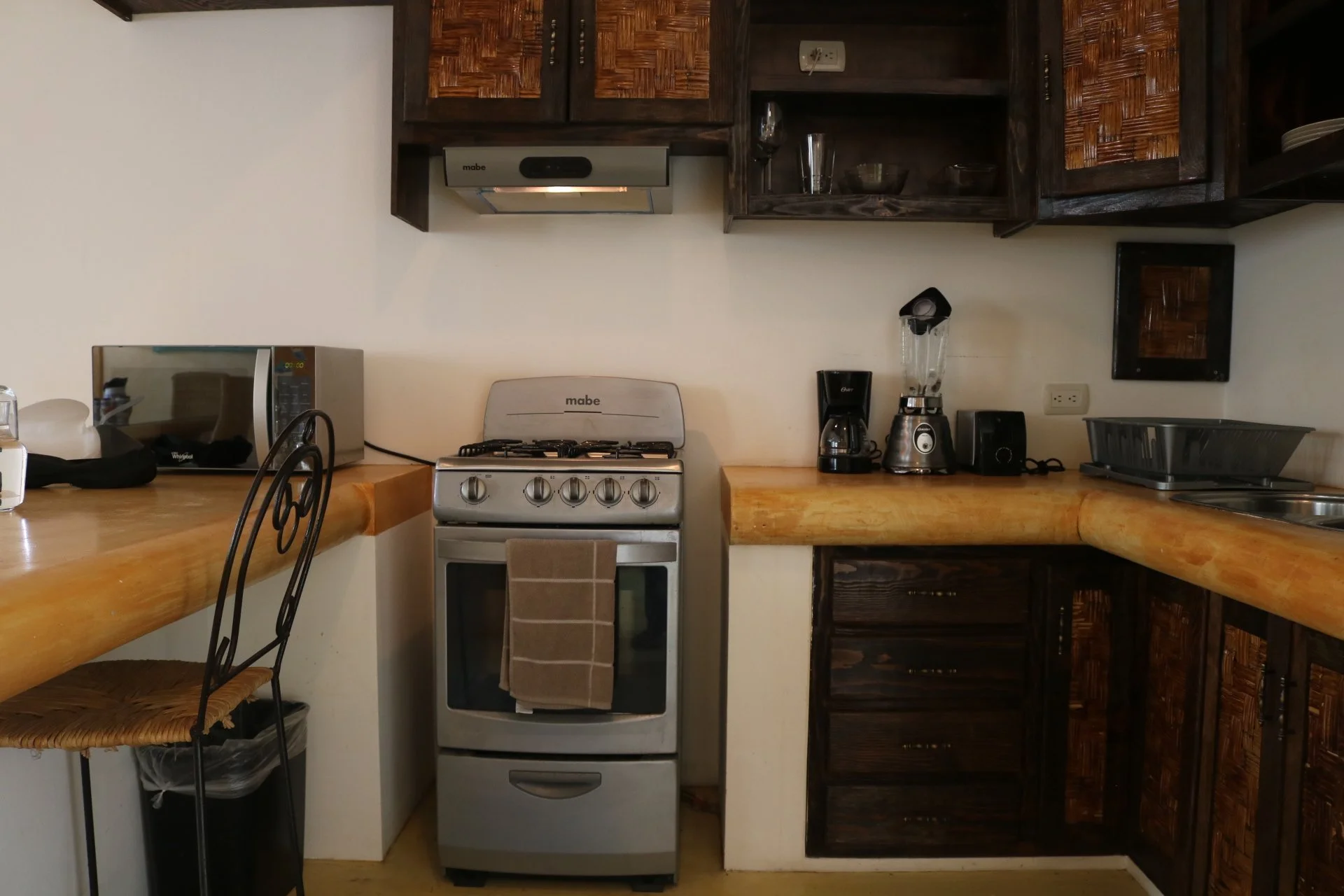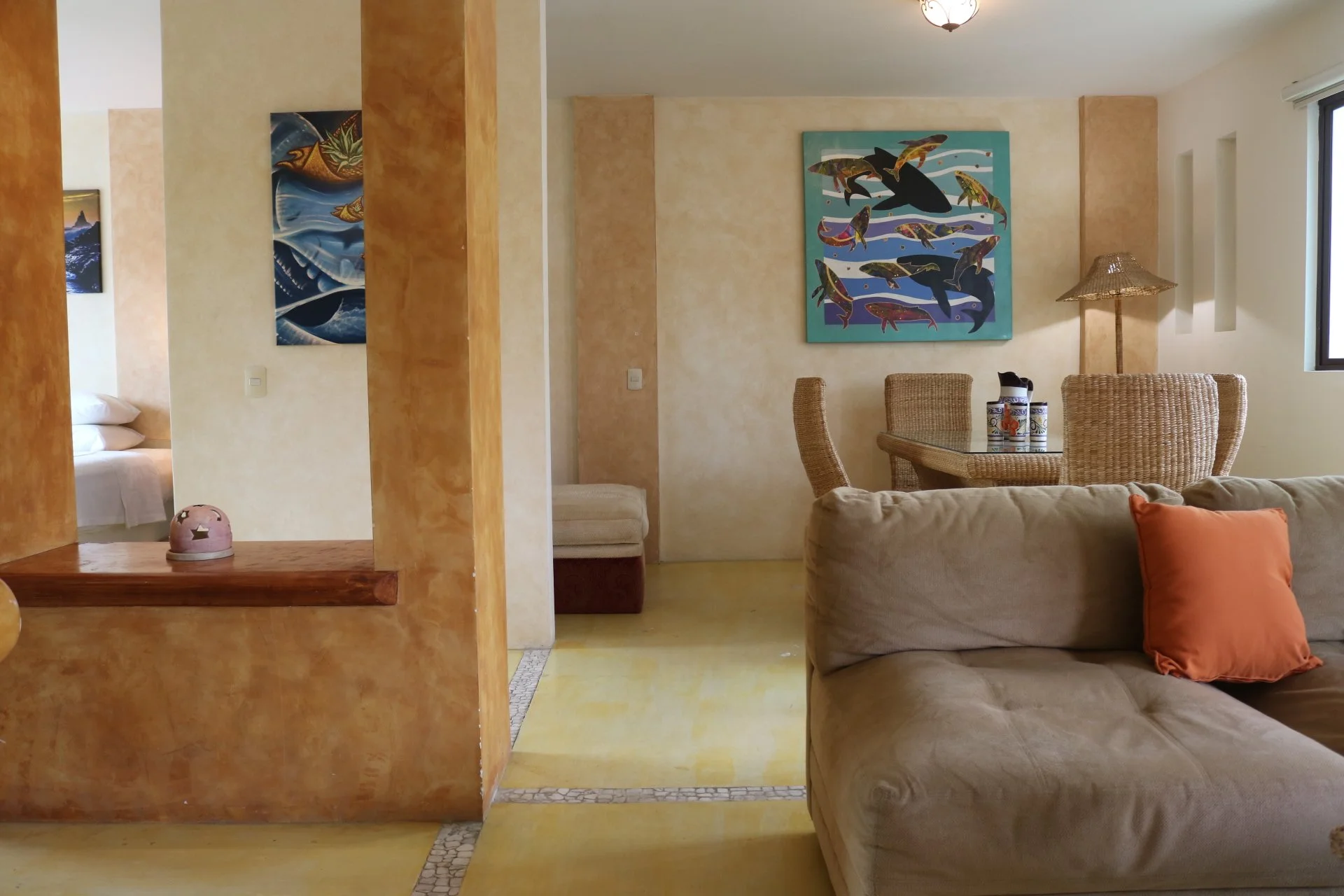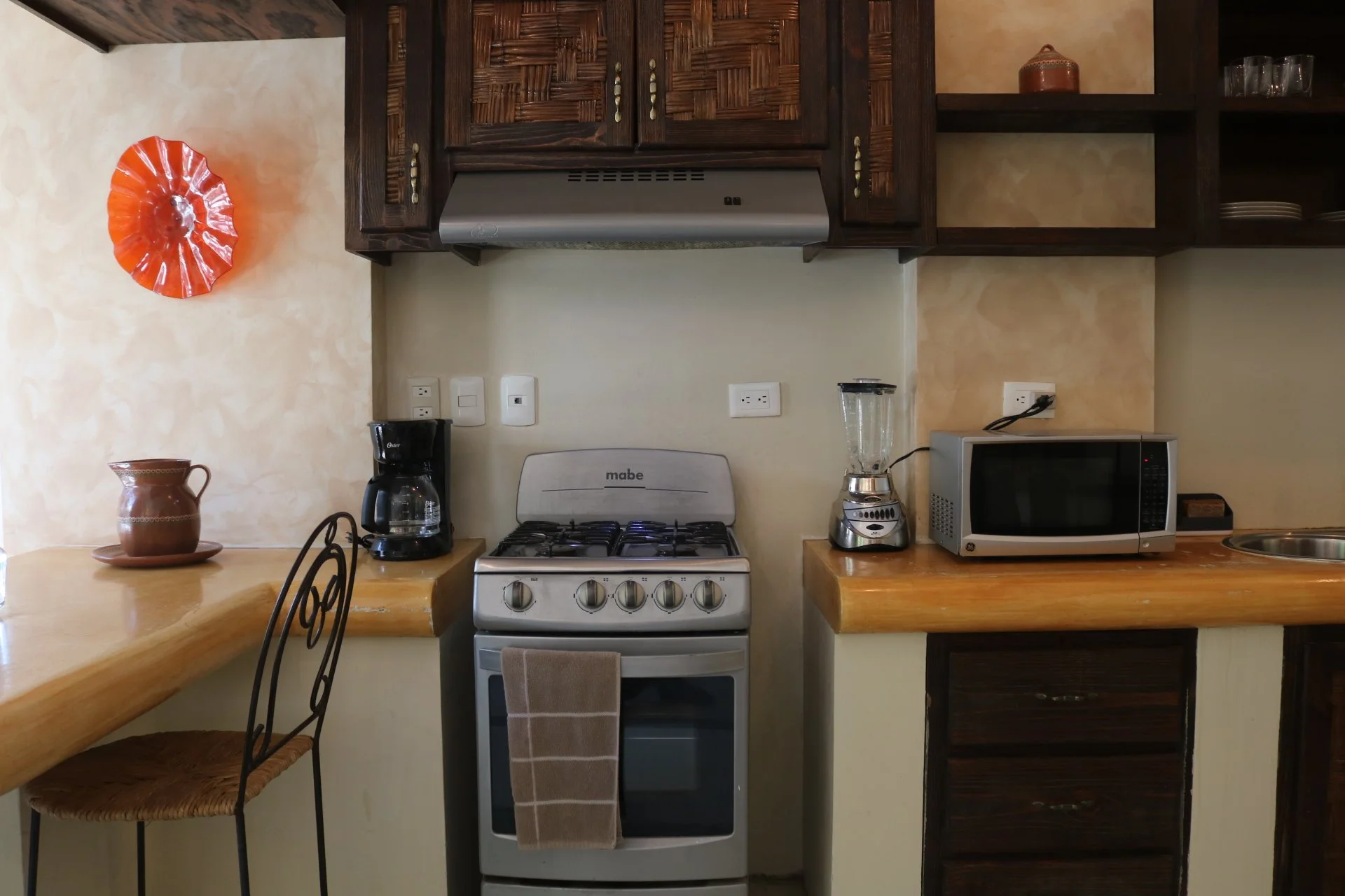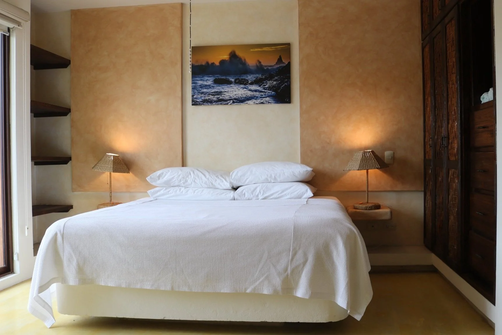 Equipped kitchen, living area, air conditioning and half bathroom, on the ground floor. The second floor includes two bedrooms, each with a double bed and air conditioning, along with a full bathroom. (Bed configuration may vary in each casita.)